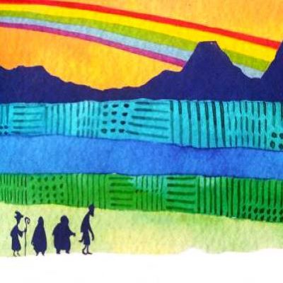Se fueron a la montaña pues, los abuelos de nuestros abuelos, los nawales. Se fueron a la montaña para averiguar cuál era el origen del arcoíris, cómo sube por el cielo.